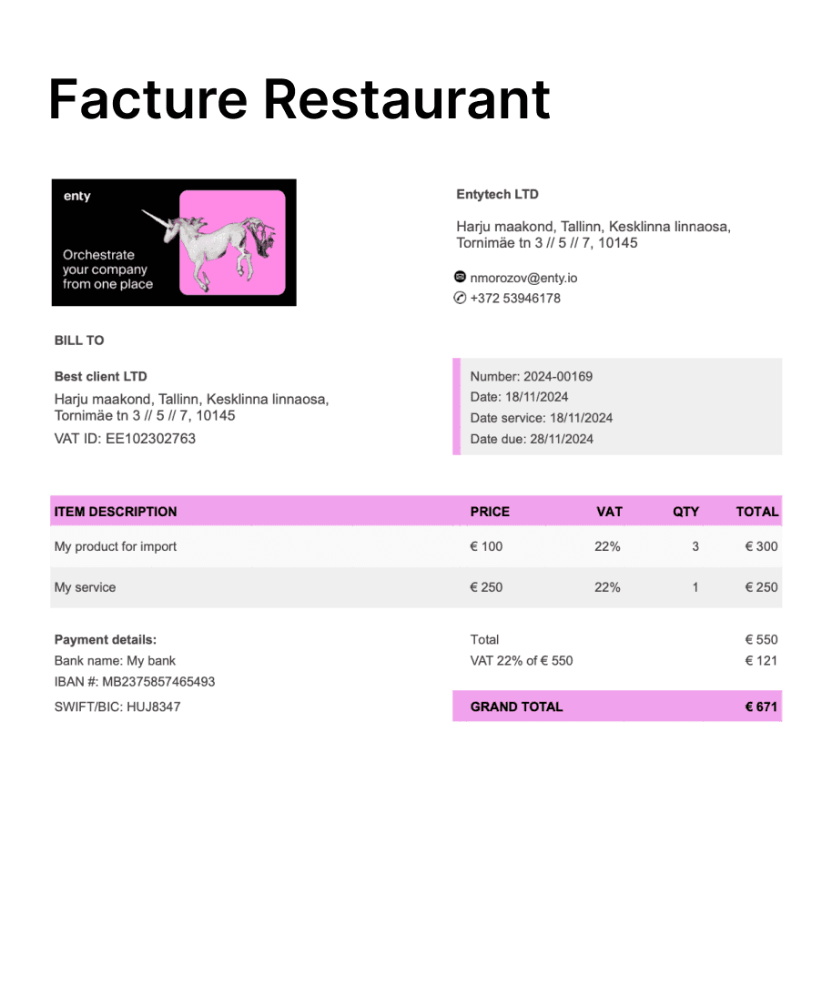 Enty.io propose une plateforme complète pour simplifier la création et la gestion de vos factures de restaurant. Voici pourquoi choisir Enty.io :