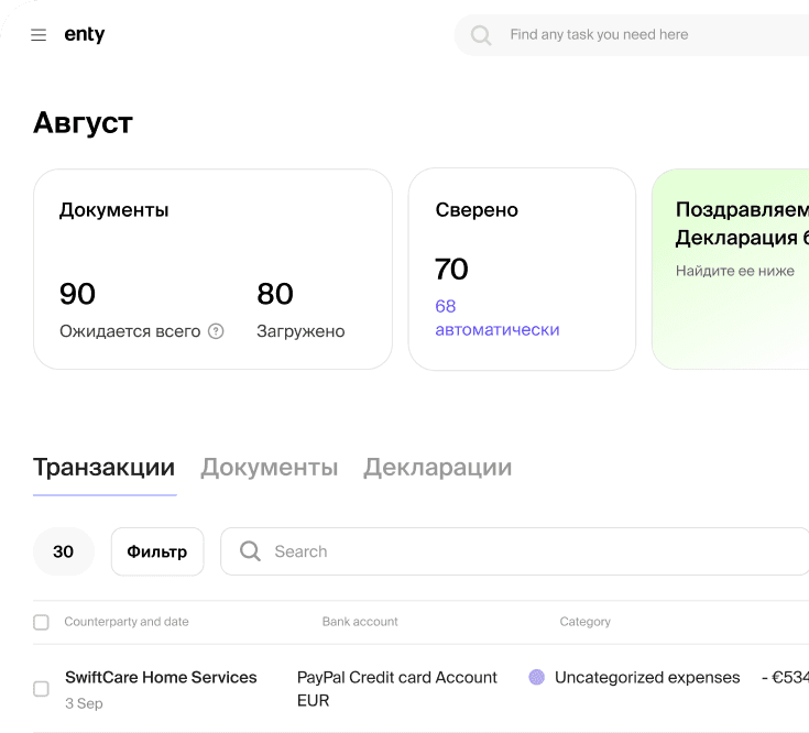 Enty сочетает автоматизацию и экспертную поддержку, беря на себя учет, отчетность и дедлайны — с прозрачными ценами и без скрытых платежей.