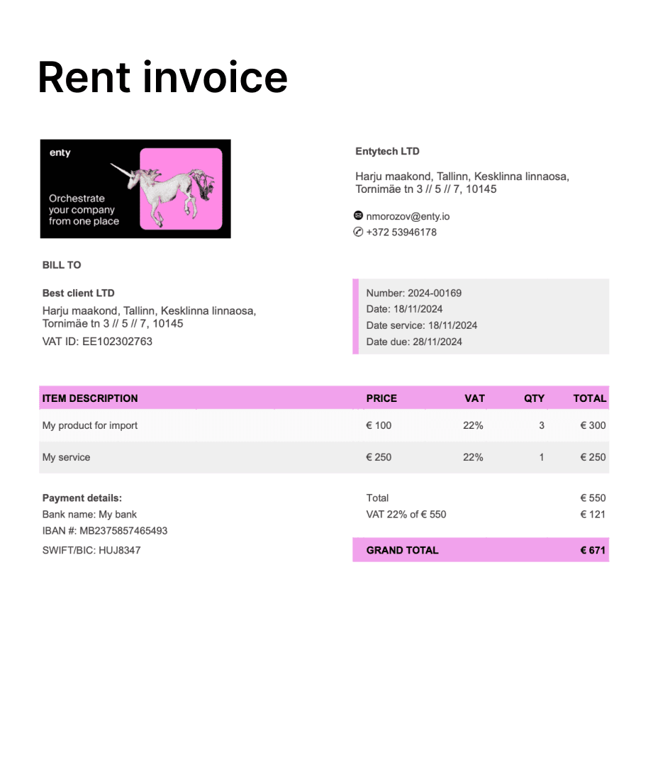 At Enty.io, we simplify your back-office operations so you can focus on managing your properties. Upon registration, you'll unlock access to customizable rental invoice templates designed specifically for landlords. With our platform, you can effortlessly create, customize, and send rental invoices. Integrated payment processing options further streamline your billing process, reduce manual errors, and help you maintain impeccable financial records. Trust Enty.io to make your rental management as seamless as possible.