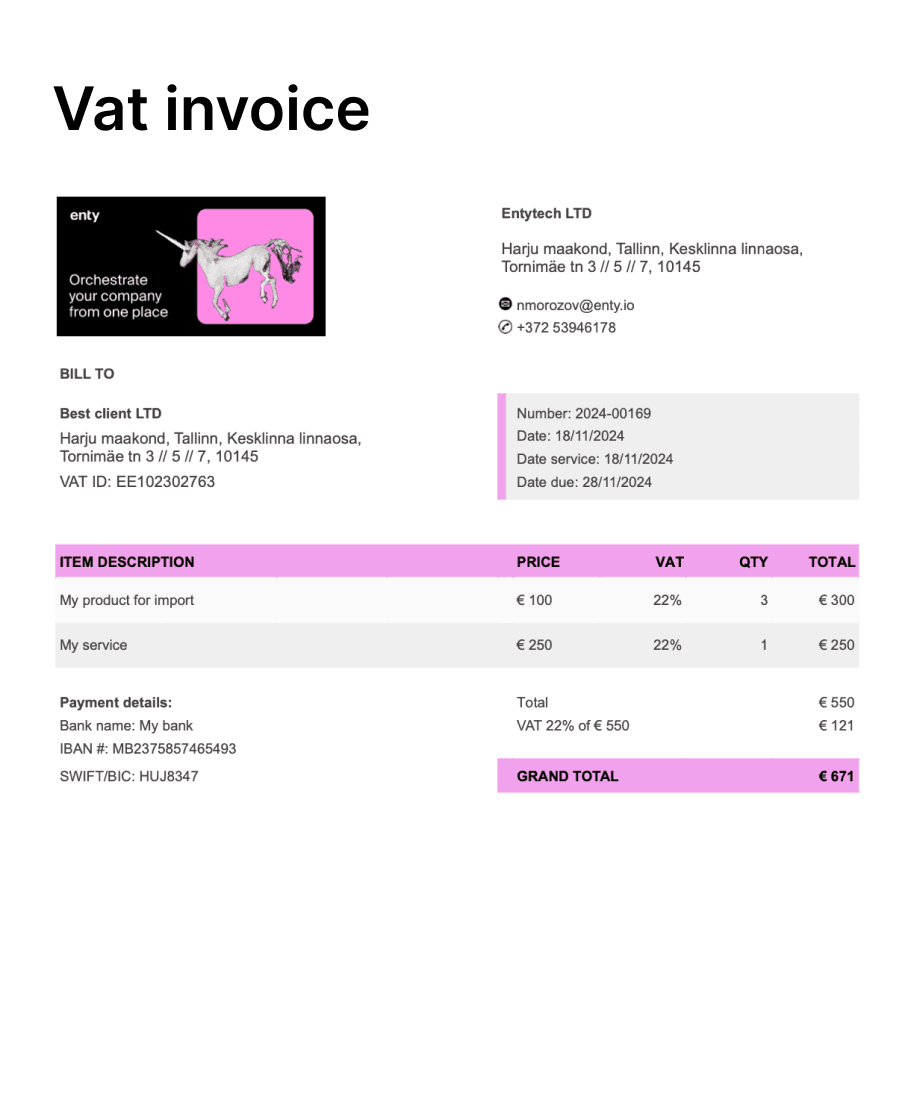 By using Enty.io, you can ensure that your invoicing process is not only compliant with tax regulations but also efficient and professionally presented.